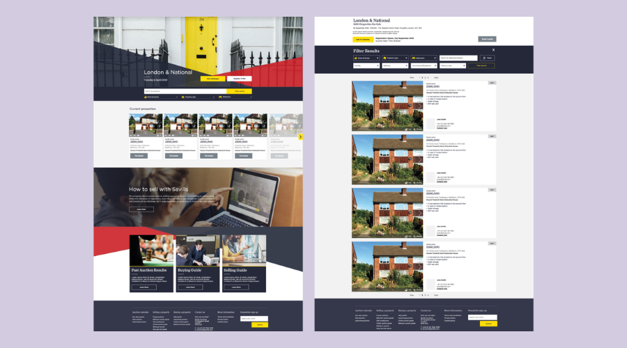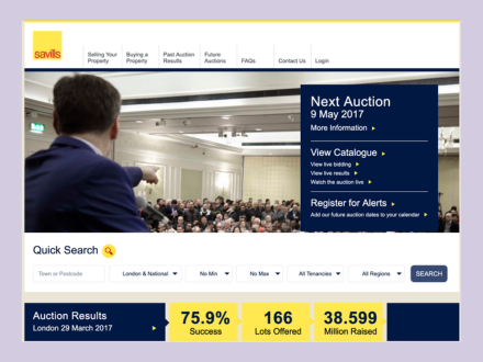 Savills came to Auction Marketer as a new client wanting an auction platform that matched their main website, same colours, same typography, same feel. But auction platforms have their own challenges with dense information, fast decisions, buyers who need price, location, tenure and condition all at a glance. That doesn't always sit naturally alongside a premium property brand requirement but as specialists, Auction Marketer was used to these requirements and had built a platform around it.